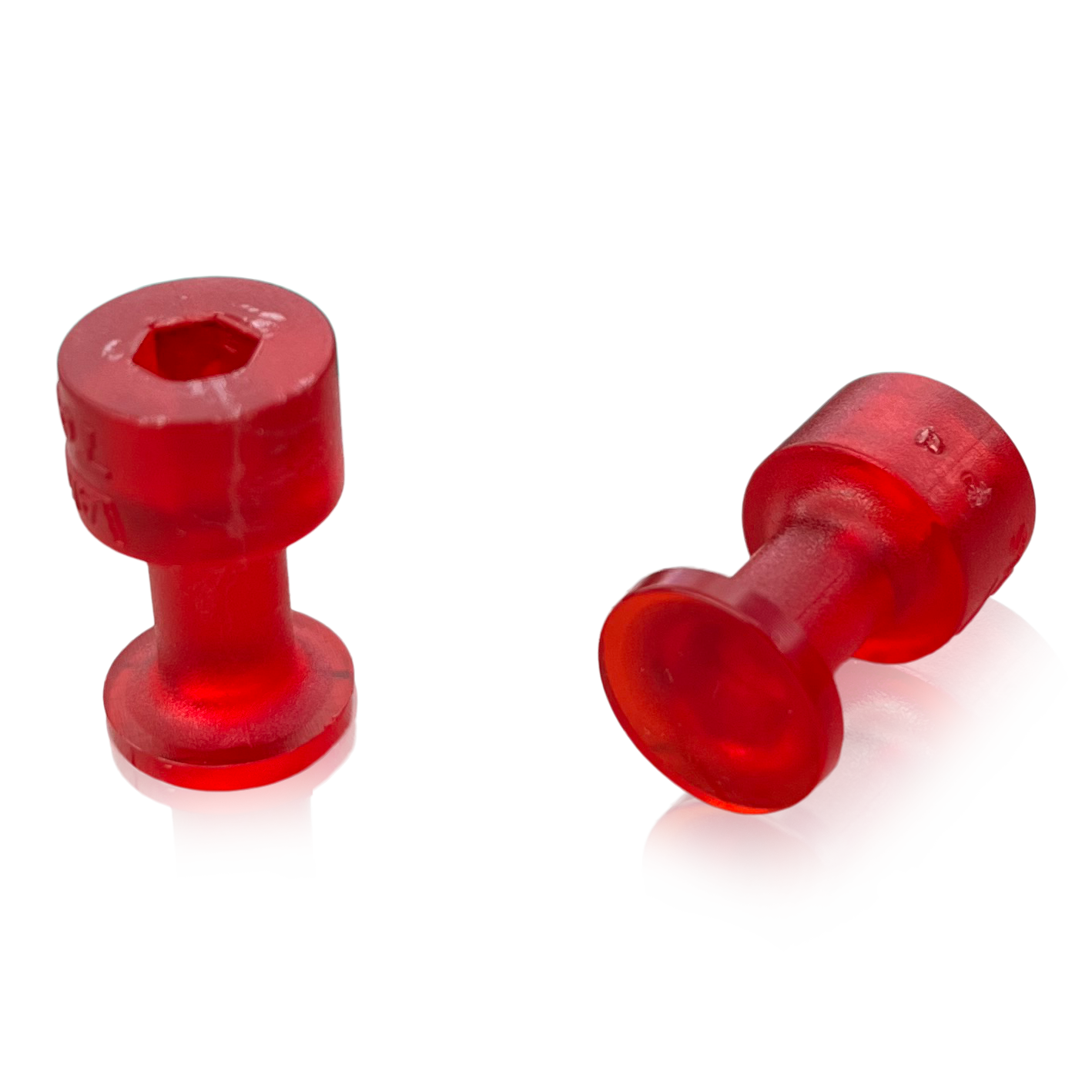 Our red adhesive tabs are made from a softer/more elastic plastic and therefore have better pulling power of the center, especially with larger shapes. Extremely stable, tough material.